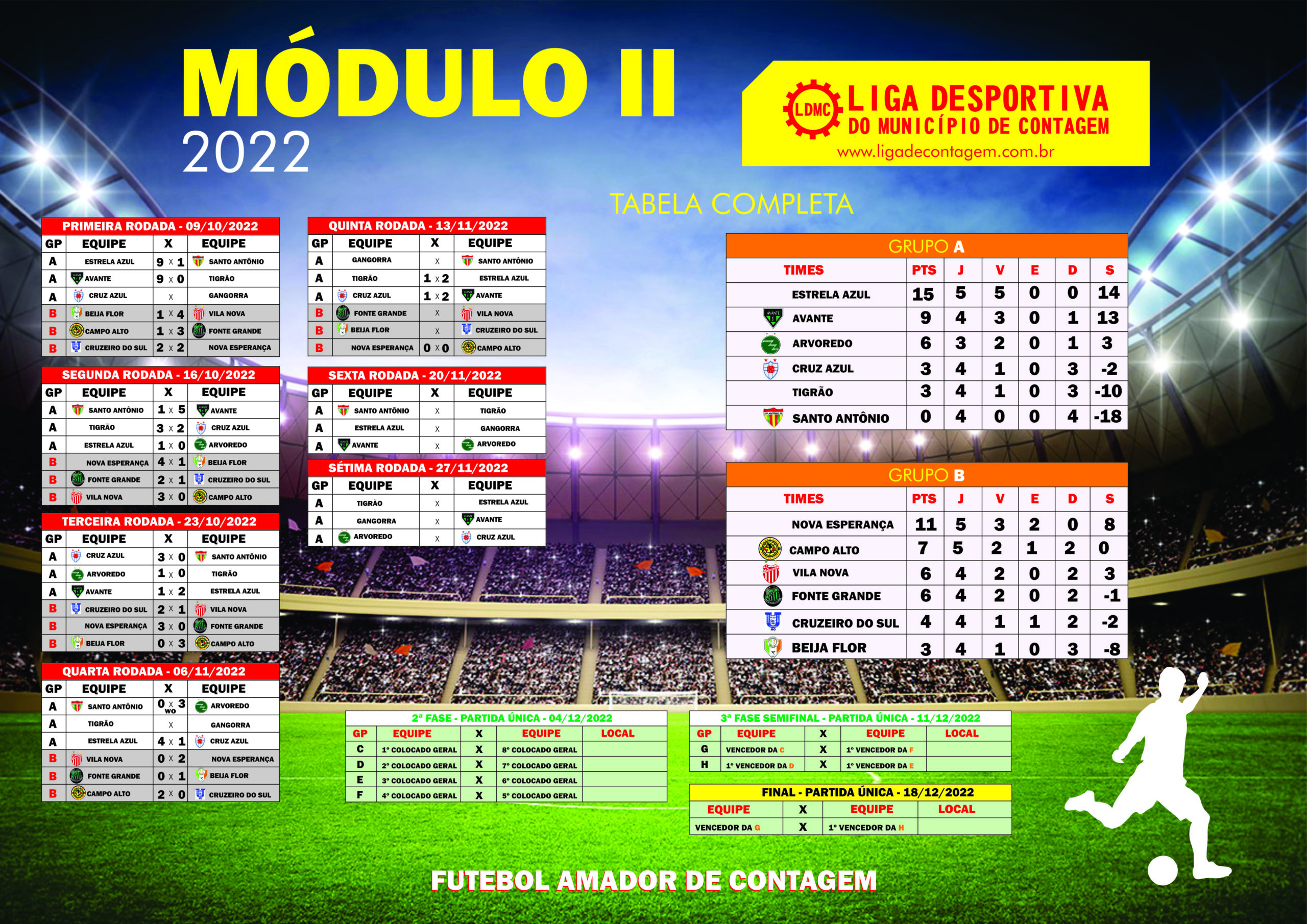TABELA DO MÓDULO II DEPOIS DA 5ª RODADA