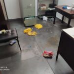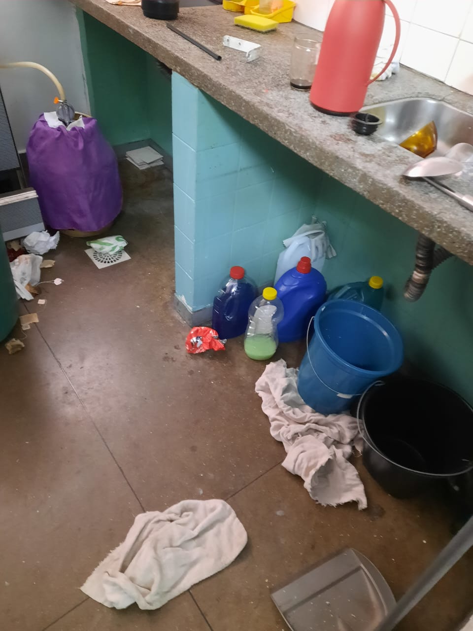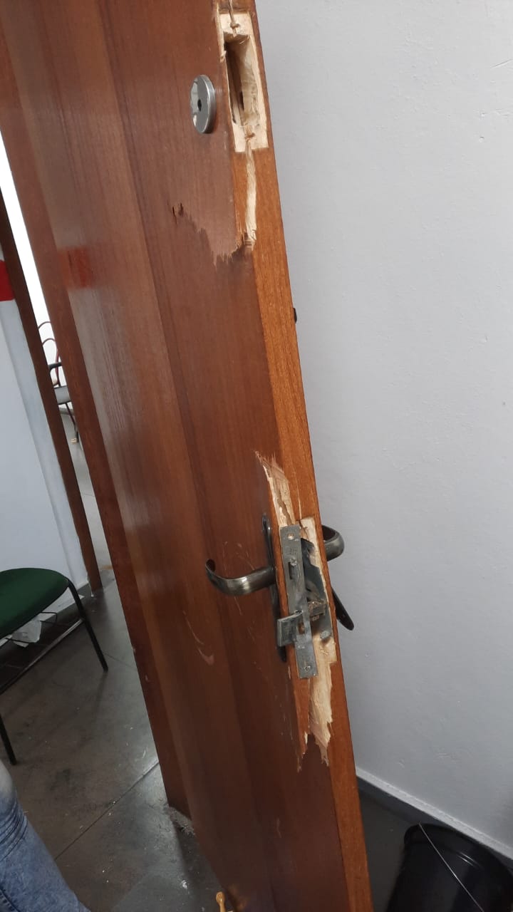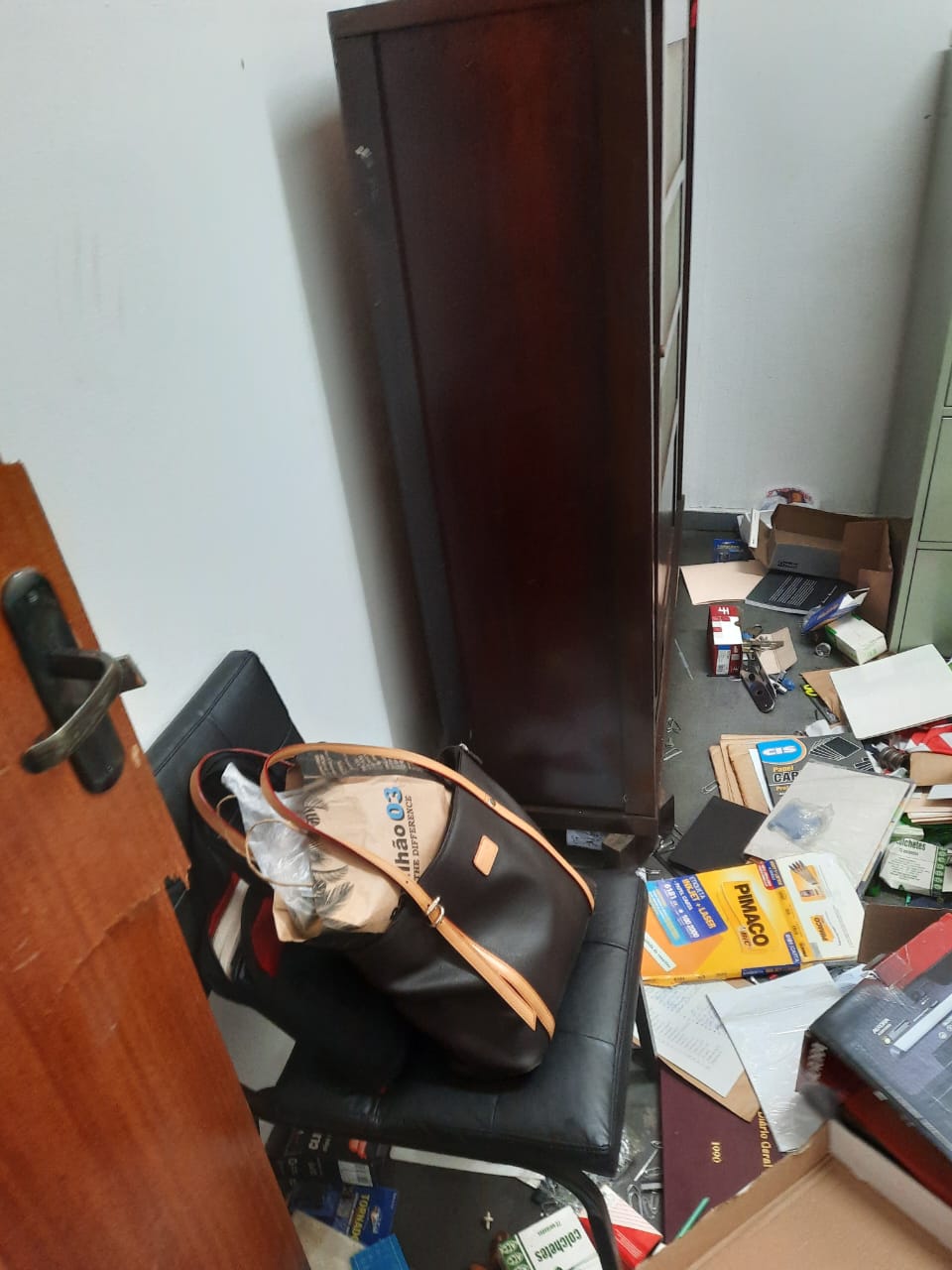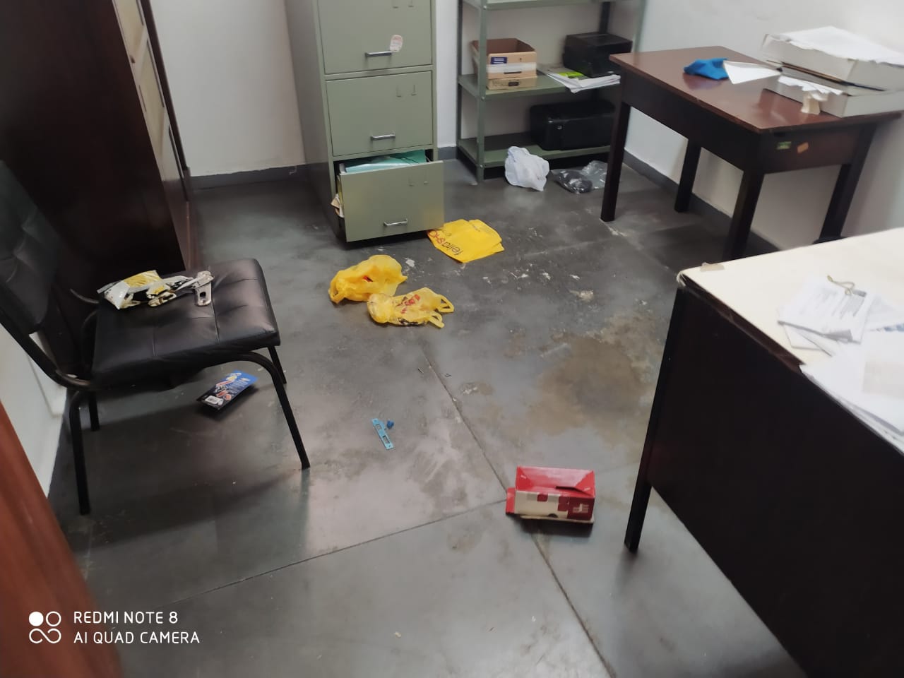 Além disso, os bandidos quebraram mesas, cadeiras, armários, o purificador de água e espalharam todos os documentos pelo chão da liga.